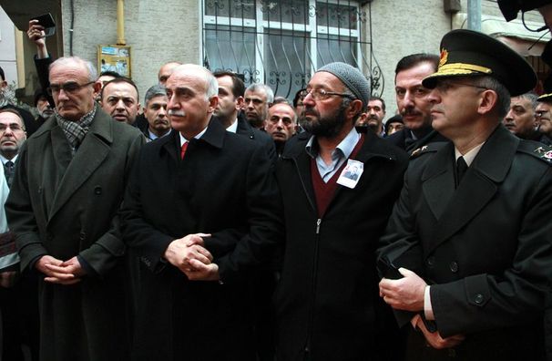 Samsun Valisi İbrahim Şahin, ayakta durmakta güçlük çeken şehidin babası Mehmet Özdemir'in elinden sımsıkı tuttu.