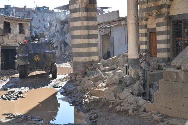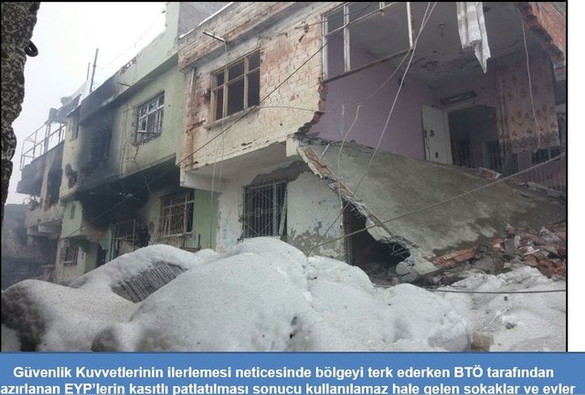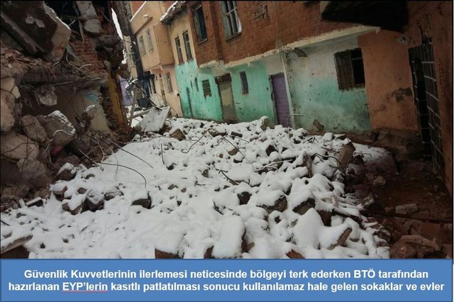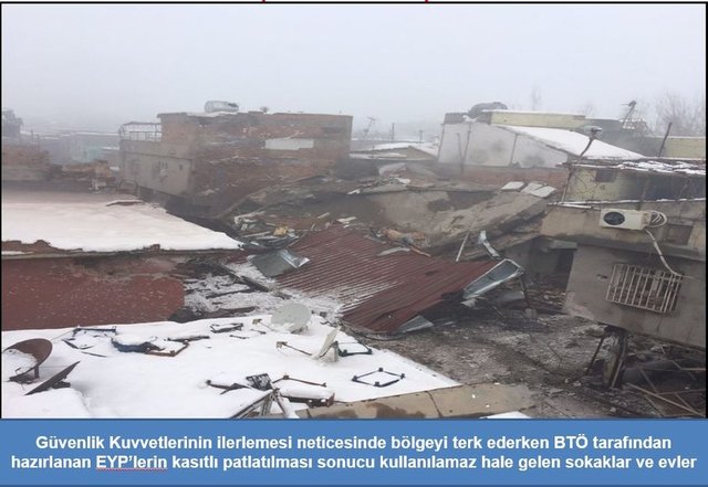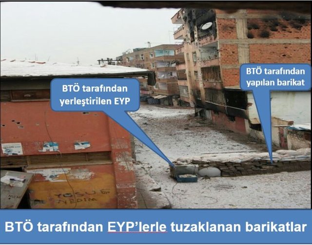 - Ufacık bir sokakta tuzaklanmış yüzün üzerinde EYP'li (El Yapımı Patlayıcı) bir alanda,