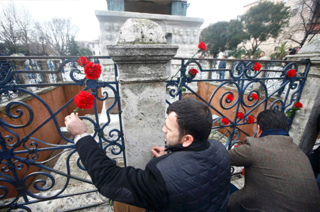 Sultanahmet'te ölenlerin anısına karanfil bıraktılar