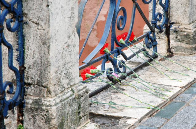 Patlamanın yaşandığı dikilitaşın koruma parmaklıklarına karanfil bırakıldığı görüldü.