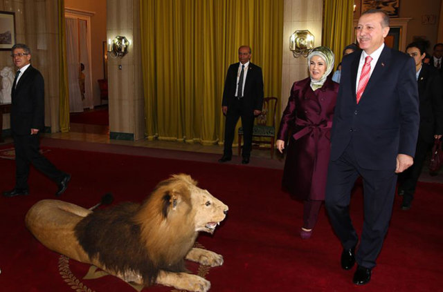 Somali'de de çeşitli temaslarda bulunan Cumhurbaşkanı Erdoğan'ın bir aslan figürü dikkatini çekti.