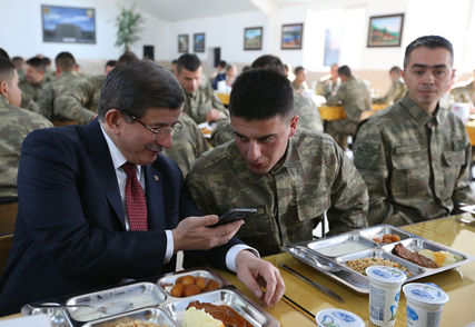 Başbakan Ahmet Davutoğlu Erzincan'daki ziyaretleri çerçevesinde bir askeri birliği de ziyaret etti. Davutoğlu burada askerlerle yemek yedi