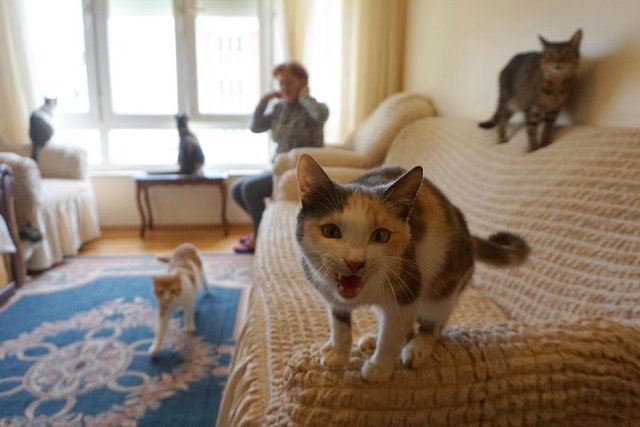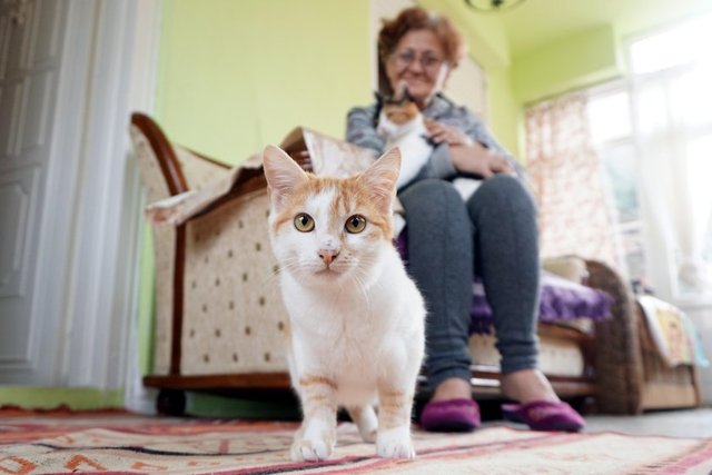 Sokakta bulduğu kedileri sahipsiz bırakmayan 52 yaşındaki Nurgül Tokgöz, 10 yıldır kiraladığı evde kedilerle beraber kalıyor.