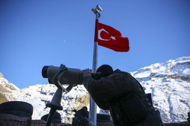 Hakkari'de kent merkezine yakın tepelerde oluşturulan "kale" görünümlü güvenlik noktalarında özel harekat polisleri, terör örgütü PKK mensuplarının sızmalarını engellemek için kuş uçurtmuyor