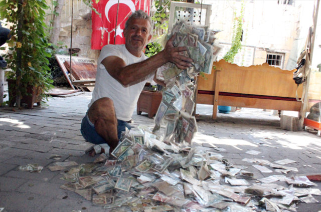 Tüm ömrünü bu paraları toplamak için geçirdiğini anlatan Kaplan, yıkıntıların arasındaki parasını kurtarmaya çalıştı.
