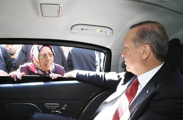 Cumhurbaşkanı Erdoğan, Kısıklı'daki konutuna dönmek için eski ikametinin bulunduğu Burhaniye Mahallesi'nden geçerken, yurttaşların sevgi gösterisi üzerine aracından inerek, kendilerini selamladı, bazılarıyla sohbet etti.