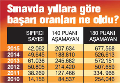 Yüksek Geçiş Sınavı’nda (YGS), adaylara Türkçe, Temel Matematik, Fen Bilimleri ve Sosyal Bilimler’den oluşan 4 farklı testin her birinden 40’ar olmak üzere toplam 160 soru yöneltiliyor. Adayların en başarısız oldukları testlerden birini matematik oluşturuyor. Geçen yıl 40 soruluk Matematik Testi’nin yapılma ortalaması 5.2 oldu. Özellikle geçen yıl matematik soruları önceki yıllara göre daha zor ve çok işlemliydi. Adaylar bu soruları çözerken çok zaman kaybetti. Doğru okumayı ve matematiksel yorum yapmayı içeren eleyici sorulardan oluşan testte sözelciler zorlandı, eşit ağırlık öğrencileri zaman kaybetti. Zekâya dayalı yorum soruları sayısalcılara de ter döktürdü. Geçen yıl geometri soruları ise önceki yıllara göre kolay oldu. YGS’nin matematik soruları giderek ALES tarzına benzemeye başladı.