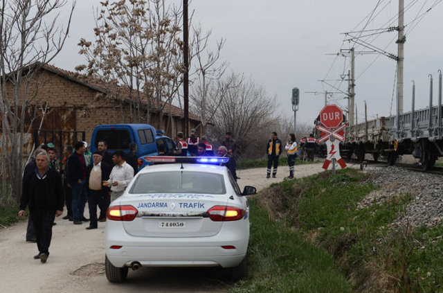 Yük treninin makinisti ifadesi alınmak üzere jandarma karakoluna götürülürken, Dilek Ortaokulu bugünlük tatil edildi. (İHA)