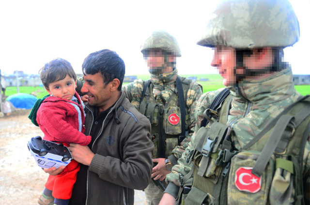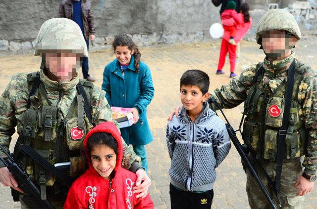 İlçenin PKK'lı teröristlerden tamamen arındırılmasının ardından polis ve askerler, Yeni Mahalle'de evlerini terk etmeyen vatandaşlara gıda yardımında bulundu. Çocuklara oyuncak dağıtan güvenlik güçleri, onlarla oyunlar oynadı.