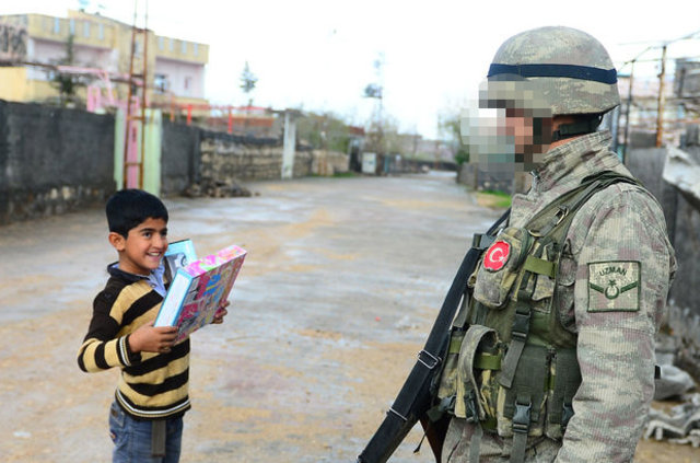 Şırnak'ın İdil ilçesinde, polis ve askerler, çocuklara oyuncak dağıttı