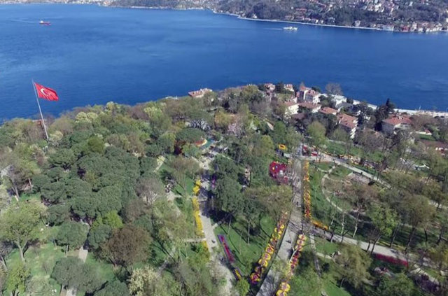 Lale festivallerinin başlatıldığı Emirgan Korusundaki laleler havadan görüntülendi