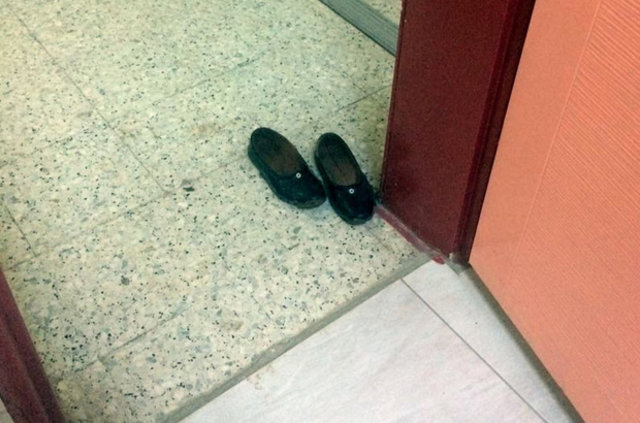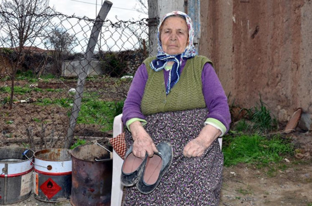 Kırıkkale'nin Sulakyurt ilçesinde yakınları tarafından acil servise getirilen 84 yaşındaki Şerife Cesur, çamurlu ayakkabılarını kapının önünde çıkardıktan sonra muayene için acil servis odasına girdi