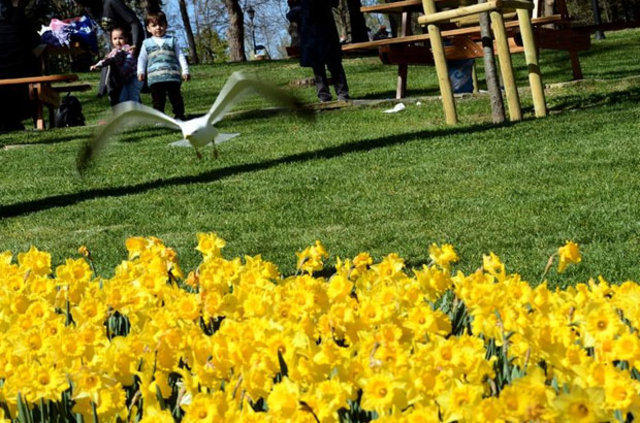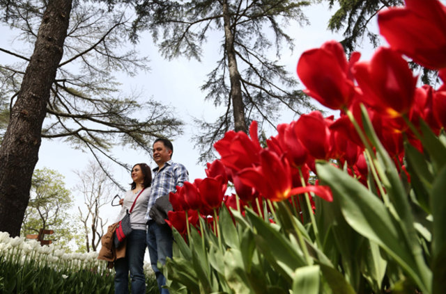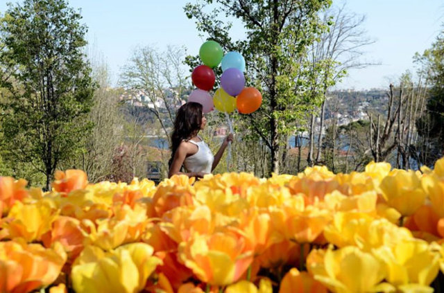 Emirgan Korusu'na gelen vatandaşlar rengarenk laleler ile bol bol fotoğraf çektirdi.