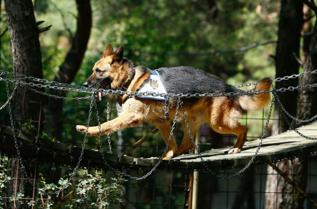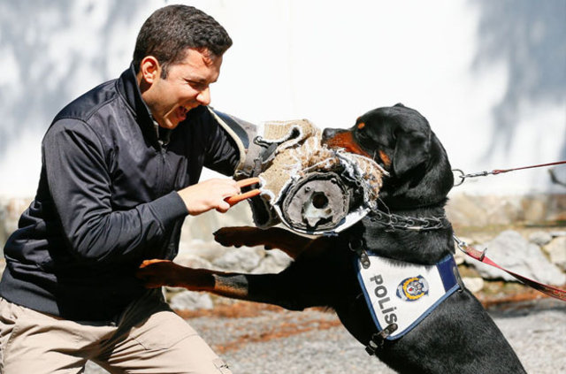 Zorlu eğitim parkurunda oyuncaklarla eğitilen köpekler, hırçın davranışlarıyla dikkat çekiyor.Farklı cinslerden köpeklerin sürekli eğitim sürecinin devam ettiği merkezde hünerlerini sergileyen köpeklerden Alman kurdu "Tores", verilen komutları eksiksiz yerine getirmesiyle takdir topluyor. Rottweiler cinsi asayiş köpeği "Dexter" ise idarecisinin komutuyla yakaladığı zanlıyı, başka bir komutla serbest bırakıyor.