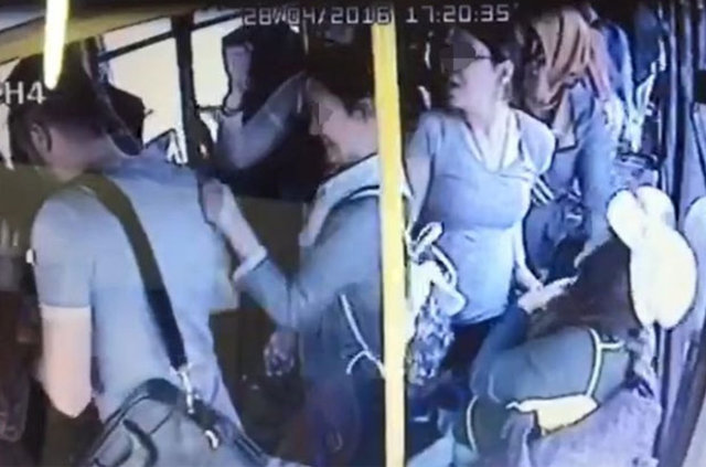 Halk otobüsünde tacize tekme tokat dayak!