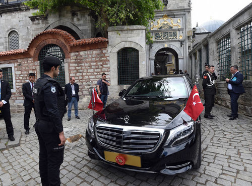 Ziyaretin ardından Erdoğan makam aracıyla caminin deniz tarafındaki Cülus Yolu Kapısı'ndan makam aracıyla çıktı. Erdoğan'ın yanında Numan Kurtulmuş'un da olduğu gözlendi. Bu arada vatandaşlar, sevgi gösterisinde bulundukları Cumhurbaşkanı Erdoğan'ın makam aracını durdurdu. Erdoğan da aracından çocuklara oyuncak dağıttı.