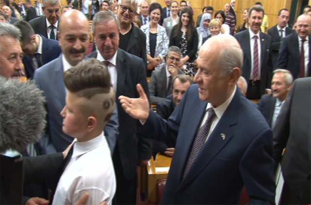 MHP'li çocuğun saç tıraşını gören Bahçeli'nin şaşkınlığı gözlerden kaçmadı.
