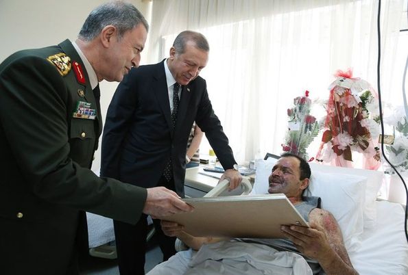 Cumhurbaşkanı Recep Tayyip Erdoğan, Şırnak'ta bir çocuğun elini ısıtırken görüntülenen ve Mardin'in Nusaybin ilçesinde yaralanarak Gülhane Askeri Tıp Akademesi'nde tedavi altına alınan Jandarma Binbaşı Necmettin Tetik'i ziyaret etti.