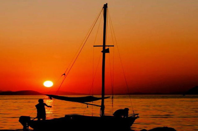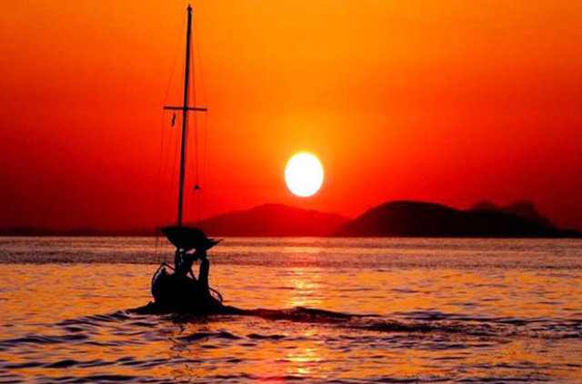 Turgutreis ve Gümüşlük mahallerinden görülen, Ege Denizi'nin üzerinde Yunan adaları üzerine batan günbatımının yarattığı kızıllık, hayran bırakıyor.