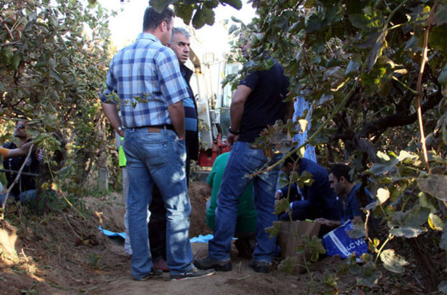 Himmet Aktürk tarafından öldürülen 4 yaşındaki Irmak Kupal'ı bağa gömerken kullandığını iddia ettiği çapa arama yapılan alanın karşısında nar toplamaya giden bir çocuk tarafından bulundu. (İHA)