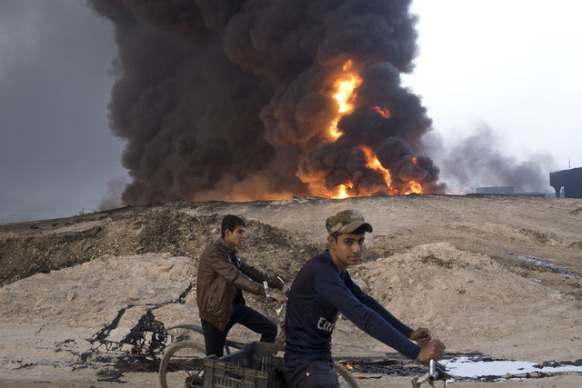 Bombaların yağdığı Musul’a yakın köylerden kadın ve çocuklar kaçıyor.