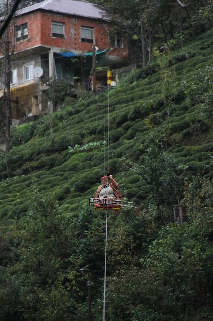 Yaşlı kadınlar yaklaşık 9 yıldır patika yolu kullanamadıkları için evlerine vadinin 70 metre üzerinden geçen 250 metre uzunluğundaki ilkel teleferiği kullanıyor. Hiçbir güvenlik sistemi bulunmayan teleferiği kullanmak zorunda olan kadınlar evlerine ulaşmak için her defasında ölüm riskini göze alıyor.