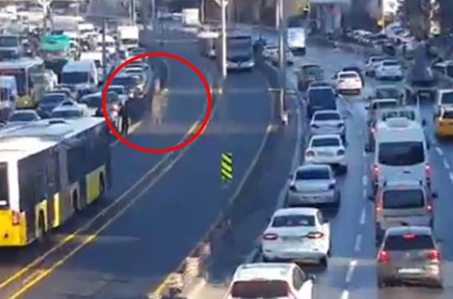 Çıplak adam korku içindeydi. Gruptan kaçmak için olsa gerek, önce E-5’e atladı, ardından da metrobüs yoluna girdi.”