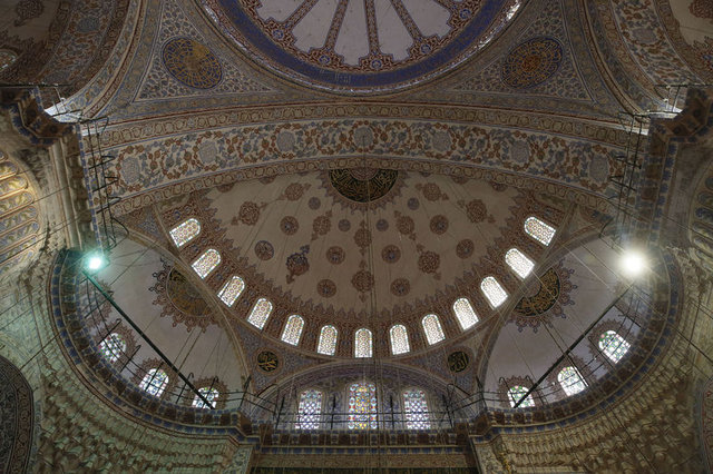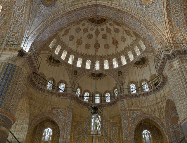 İznik'te yapılan 20 bini aşkın çiniyle bezendiği, yarım kubbeleri ve büyük kubbesinin içi de mavi ağırlıklı kalem işleri ile süslendiği için yabancı turistlerin "Blue Mosque" olarak adlandırdığı Sultanahmet Camisi, Osmanlı mimarlığının ilk ve tek 6 minareli camisi olma özelliği taşıyor.