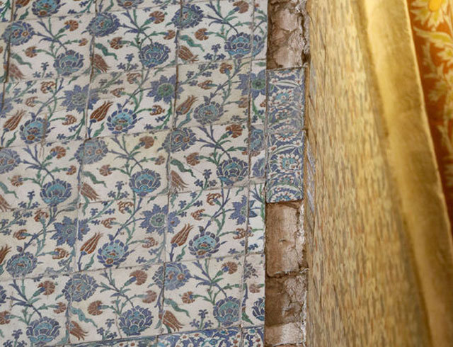 "Ne yazık ki, bugüne kadar birçok yerde çiniler çalınmış vaziyette, hem yazı hem de çini pano olarak çalınmış. Eskiden çalınan yerler için çözüm üretilmiyordu, oralar tamamlanmıyordu. Anıtlar Kurulunun aldığı karar çerçevesinde orijinaline uygun, birebir aynısını yaparak bu çinilerin tamamlanmasıyla alakalı çözüm üretildi. Biz de restorasyonda uygun çinileri üreteceğiz."