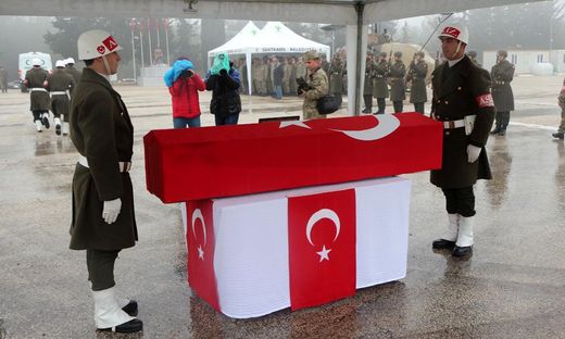 Fırat Kalkanı Harekatı'nın 47'nci şehidi olan Osman Açıkgöz'ün Türk bayrağına sarılı tabutu buradaki tören sonrası cenaze aracına konularak toprağa verilmek üzere karayoluyla memleketi Kahramanmaraş'a gönderildi.