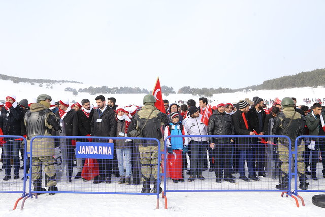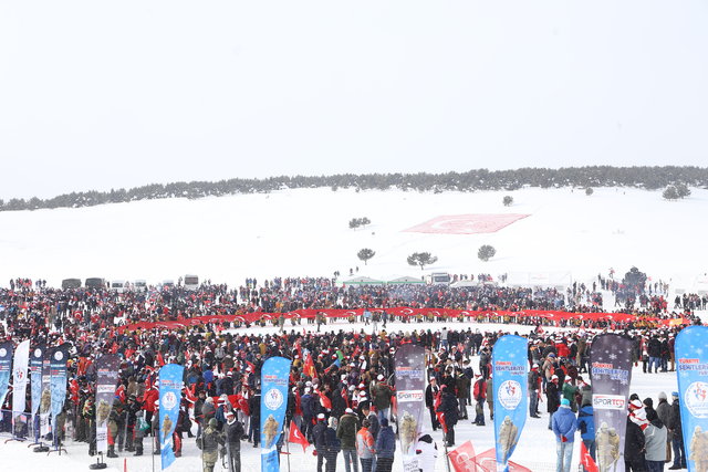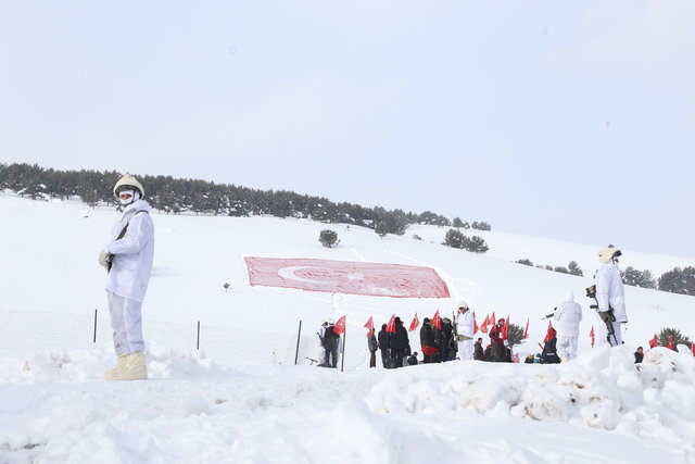 soğuk havaya ve hafif kar yağışına rağmen komando timlerinin de aralarında bulunduğu binlerce kişi, ellerinde Türk bayrakları taşıyarak tekbir ve salavatlarla Yukarı Sarıkamış Şehitliği'ne doğru yürüyüşe geçti.
