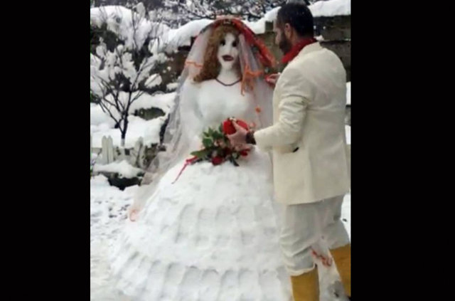"3 saat uğraşarak yaptık. Görenler başıma soğuk geçtiğini düşünüyor. Bu kadar çok ilgi göreceğini hiç düşünmemiştim. Ama kardan gelinle balayının çok soğuk geçtiği kesin".
