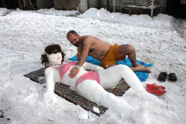 Balkanlar'dan gelen yoğun kar yağışı sebebiyle mahsur kaldığını, kızı Azra ve yeğenleriyle eğlenmek için kardan gelinin devamını yaptıklarını dile getiren Ertan K., "Annem ve eşim benimle görüntülenmek istemedi. Seneye kardan çocuklarımız olur herhalde.