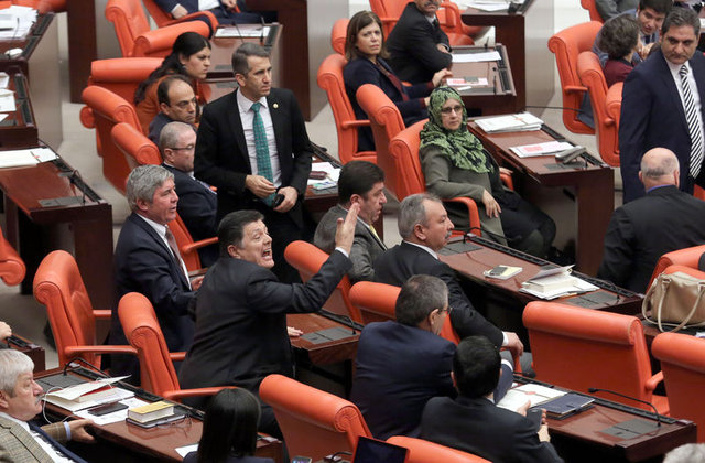 Milletvekillerinin kaldırdığı pankartlar, muhalefet ve iktidar partileri arasında sözlü tartışmalara neden oldu.