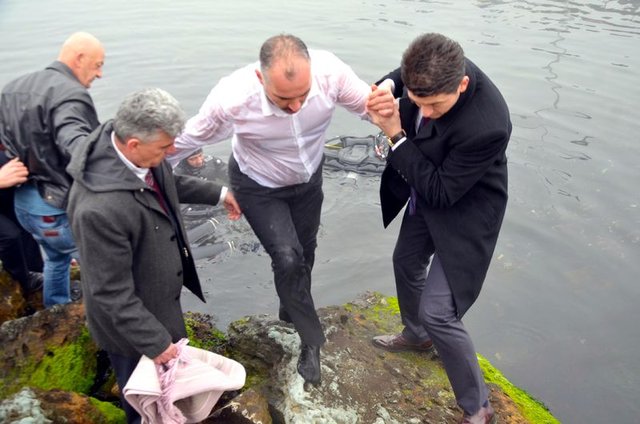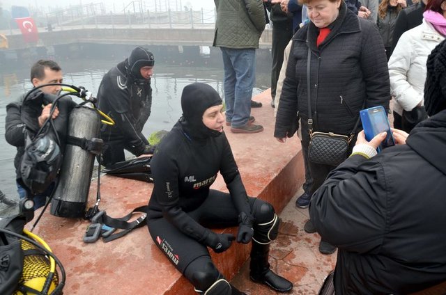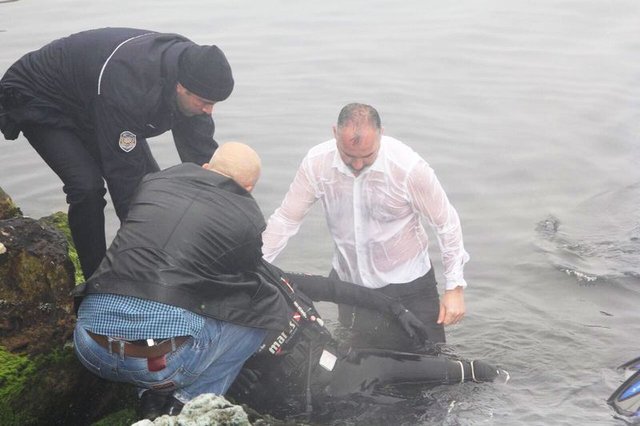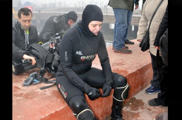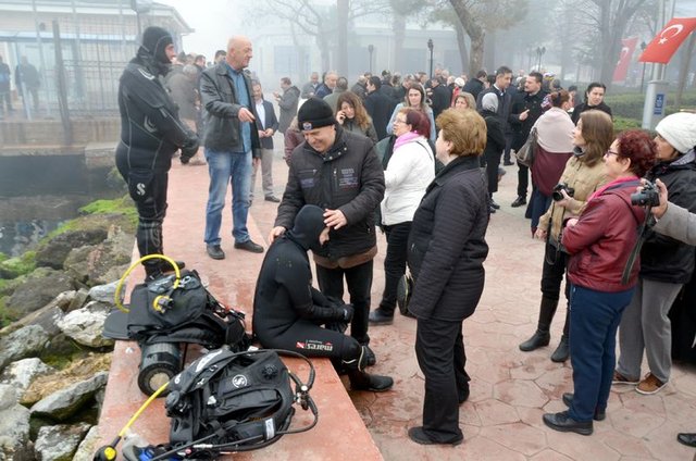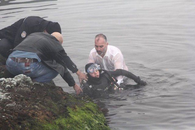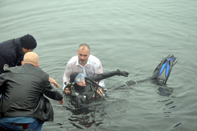 Bayan dalgıç Şenay Ertorun'un fenalaştığını fark eden Karamürsel Belediye Başkanı İsmail Yıldırım, hemen kravatını çıkartarak denize atladı.