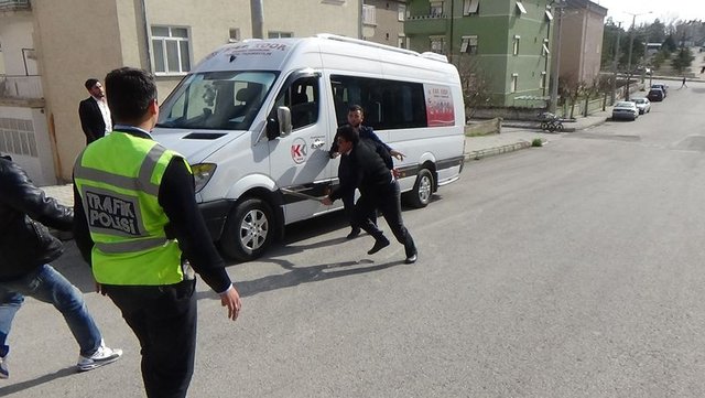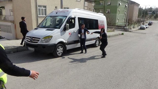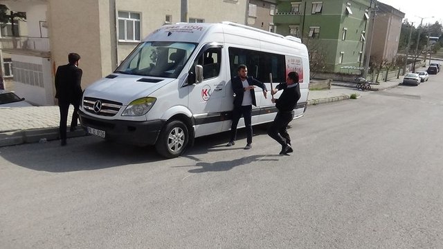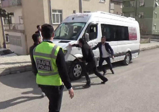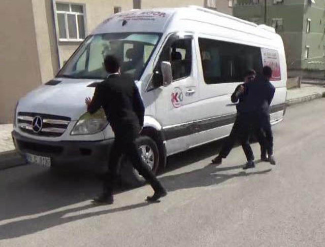 Sinirlerine hakim olamayan öfkeli baba, "Oğlum bura hastane mi?" diyerek koşarak servis minibüsünün yanında bekleyen oğlunun yanına gidip, minibüsten aldığı sopayla oğluna saldırmak istedi.