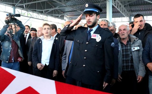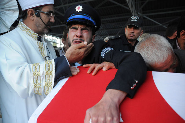 Törene ağabeyinin polis üniformasıyla gelen Mehmet Özdemir, tabuta sarılıp gözyaşı döktü. Şehit ağabeyinin tabutu başında selam duran Mehmet Özdemir, polisler ve yakınları tarafından güçlükle sakinleştirildi.