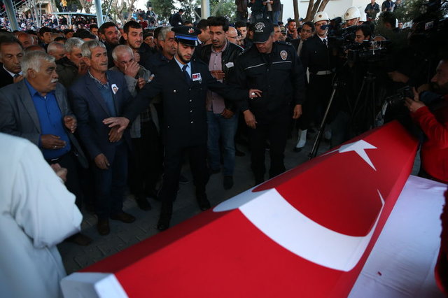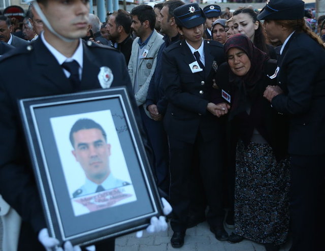 Şehit polis Mesut Özdemir'in naaşı mahalle mezarlığında akşam saatlerinde düzenlenen törenin ardından gözyaşları arasında toprağa verildi.