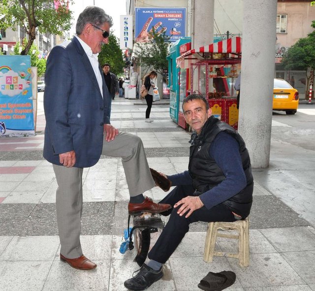 Manisa'da ayakkabı boyacılığı yapan Orhan Yeniyekin de 1 Mayıs'ı çalışarak geçirenler arasında.