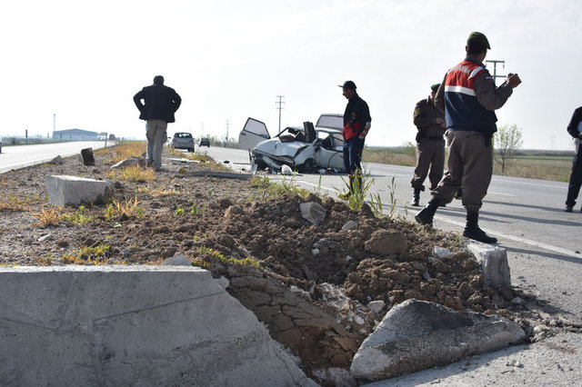 İzzettin Öztürk yönetimindeki otomobil, Karapınar'a yaklaşık 60 kilometre kala bilinmeyen nedenle kontrolden çıkıp refüje çarptı.