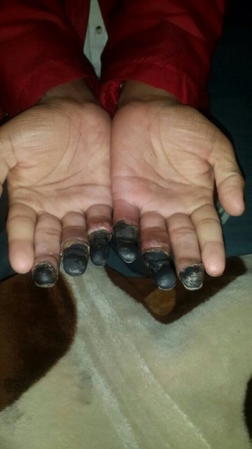 "Hastanın her iki el 3'üncü, 4'üncü ve 5'inci parmak uç kısımlarda kuru nekroz mevcuttur. Bu durum 3-4-5'inci parmakların uç kısımlarında kayba neden olmuştur. Kısmi fonksiyon kaybına da sebep olmuştur. Hasta özellikle kavrama hareketlerinde sıkıntı yaşayacaktır." Bağcılar Eğitim ve Araştırma Hastanesi Raporu