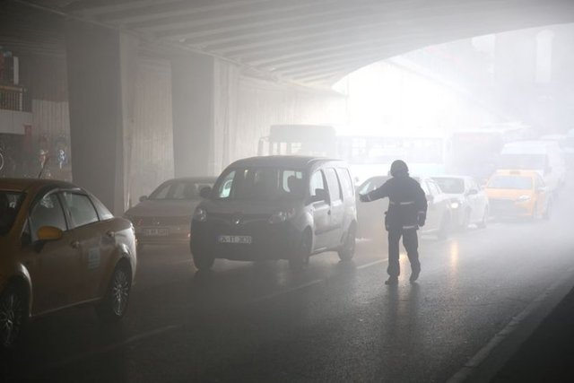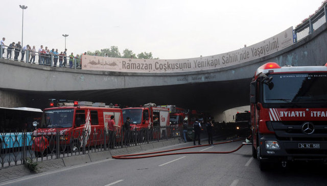 Yangın nedeniyle geçitteki trafik akışı kontrollü sağlanıyor.