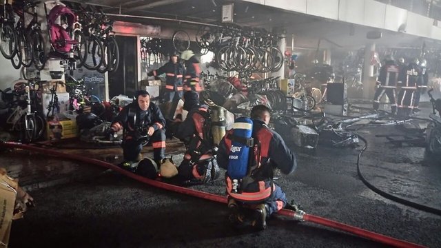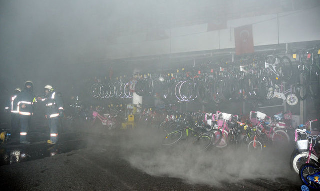Açıklamada, "İlk bilgilere göre yangının bisiklet malzemelerinin depolandığı bölümde çıktığı tahmin ediliyor. Yangının yoğun dumanlı olması ve yayılma riski nedeniyle 'Duman Savar', Bakırköy, Şişli, Bayrampaşa, Beyoğlu itfaiye gruplarından takviye ekipler sevk edildi. Unkapanı ve Aksaray yönünde trafik akışı durduruldu" denildi.