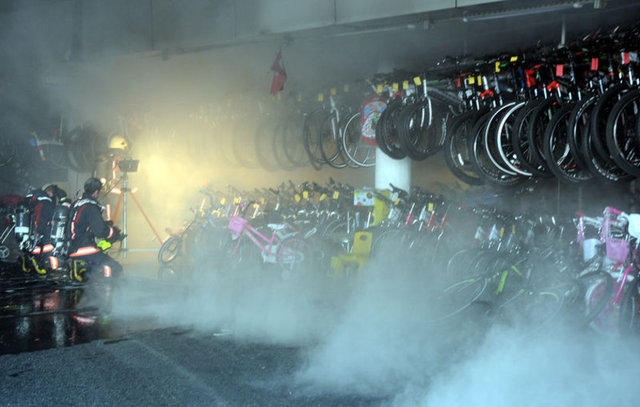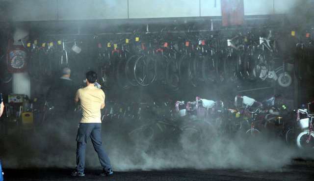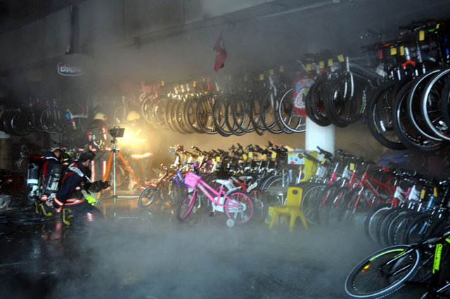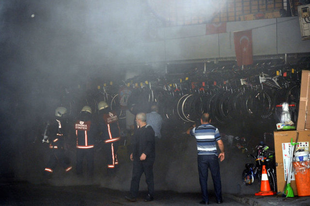 Yangın saat 09.30 sıralarında çıktı. Haşim İşçan Geçidi'nde bulunan Bisikletçiler Çarşısı'ndaki bir işyerinin deposunda yangın çıktı. Bisiklet ve bebek arabalarının bulunduğu depodaki yangın büyüyerek 2 dükkana daha sıçradı. İhbar üzerine olay yerine gelen fatih itfaiyesi yetersiz kalınca Bayrampaşa, Beyoğlu, Bakırköy ve Şişli itfaiye ekipleri de sevk edildi.