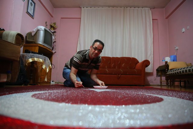 Suriyeli Hasan Massri, 325 bin kristal camla Türk bayrağı yaptı