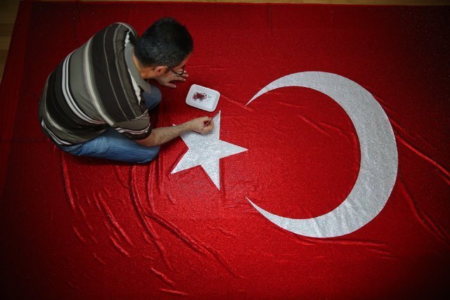Suriyeli moda tasarımcı Hasan Massri, 325 bin kristal camla süslediği 3 metre eninde 4 metre boyunda görkemli bir Türk bayrağı yaptı