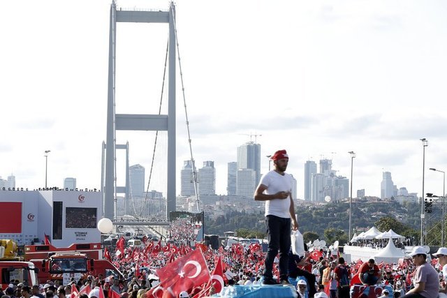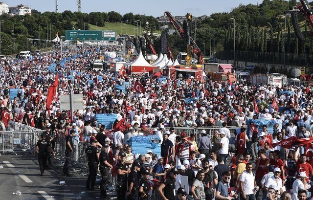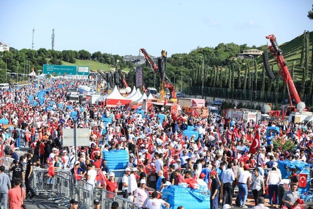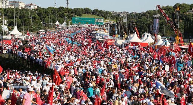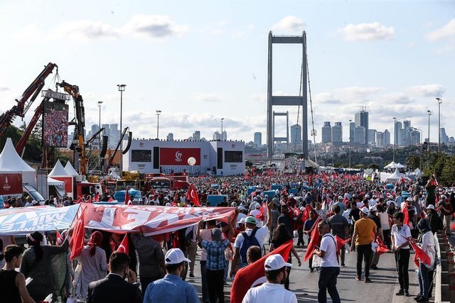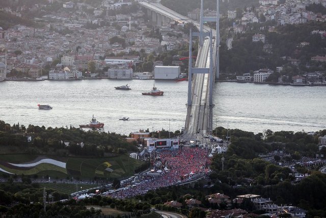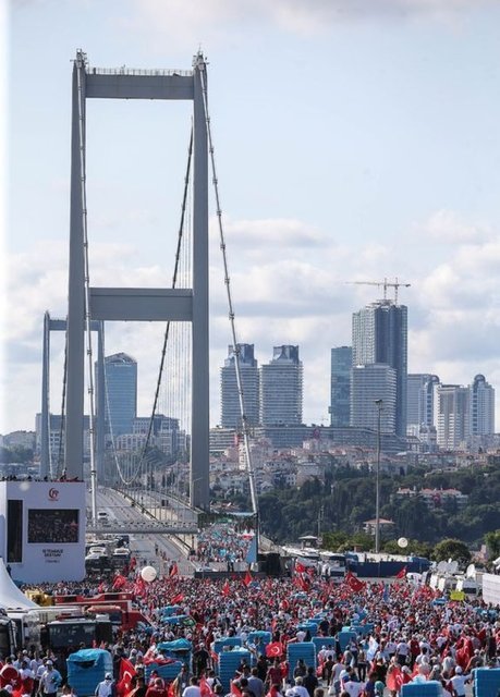 Anma töreni dolayısıyla 15 Temmuz Şehitler Köprüsü dün 12.00de çift yönlü trafiğe kapatılmıştı.