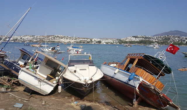 Deprem sırasında 30’a yakın otomobilde, ağaç dalları ve kayaların düşmesi sonucu hasar oluştu. Bodrum Belediye Başkanı Mehmet Kocadon, yaz aylarıyla birlikte nüfusun 1 milyon 200 bine ulaştığı ilçede can kaybı olmadığını belirtip yol çökmeleri, toprak kaymaları yaşandığını söyledi. Kandilli Rasathanesi, deprem sonrası Bodrum Limanı içindeki istasyonda 13 santimetrelik tsunami kaydedildiğini ancak daha yüksek bir tsunami hareketinin olduğunu açıkladı. Tsunaminin bazı yerlerde 30 santimetreyi bulduğu, suyun kıyıdan 10 metreden 100 metreye içeri sokulduğu belirtildi.