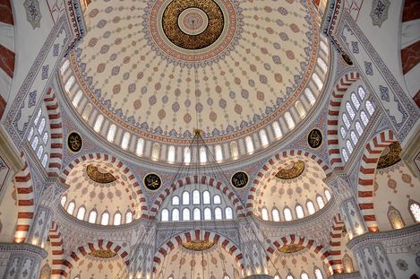 DHA'nın haberine göre, Türkiye'nin en büyük kubbesine sahip olan Sabancı Merkez Cami'nin 12 yan kubbesi, 32 metrelik kubbe çabı ve 54 metre kubbe yüksekliği ile literatürde ilk özelliğine sahip.