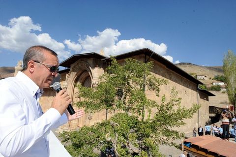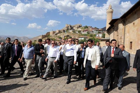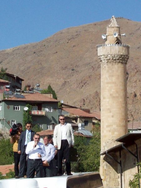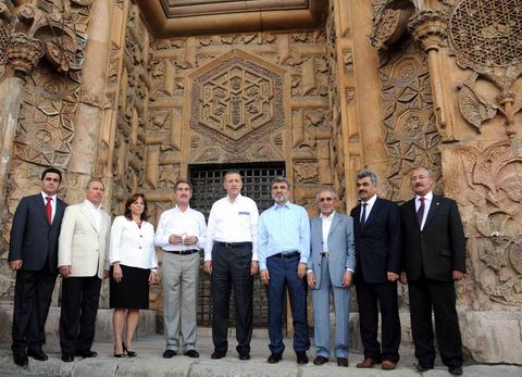 Başbakan Recep Tayyip Erdoğan mitingde yaptığı konuşmada, CHP ve MHP Genel Başkanları'na yüklendi. İktidara geldikleri günden bu yana yapılan çalışmalardan da bahseden Erdoğan, miting öncesi Sivas'ın Divriği İlçesi'ndeki Dünyaca ünlü Divriği Ulu Cami'de incelemelerde bulunduğu belirterek, "1228 yılında inşa edilen Divriği Ulu Cami'yi uzun bir aradan sonra biz ele aldık. Kültür ve Turizm Bakanlığımız'ın çalışmaları neticesinde camiyi eski çehresine kavuşturacağız. Biz bu ata yadigarına sahip çıktık" diye konuştu. Özellikle gençlerden, Türkiye'deki ve bölgelerindeki tarihi eserleri ziyaret edip nasıl bir kültüre ve medeniyete sahip olduklarını görmelerini de isteyen Başbakan Erdoğan, ''Bu eserlerin her biri köklü tarihimizi, şanlı geçmişimizi, sevgi medeniyetimizi yani bizi anlatıyor" dedi.